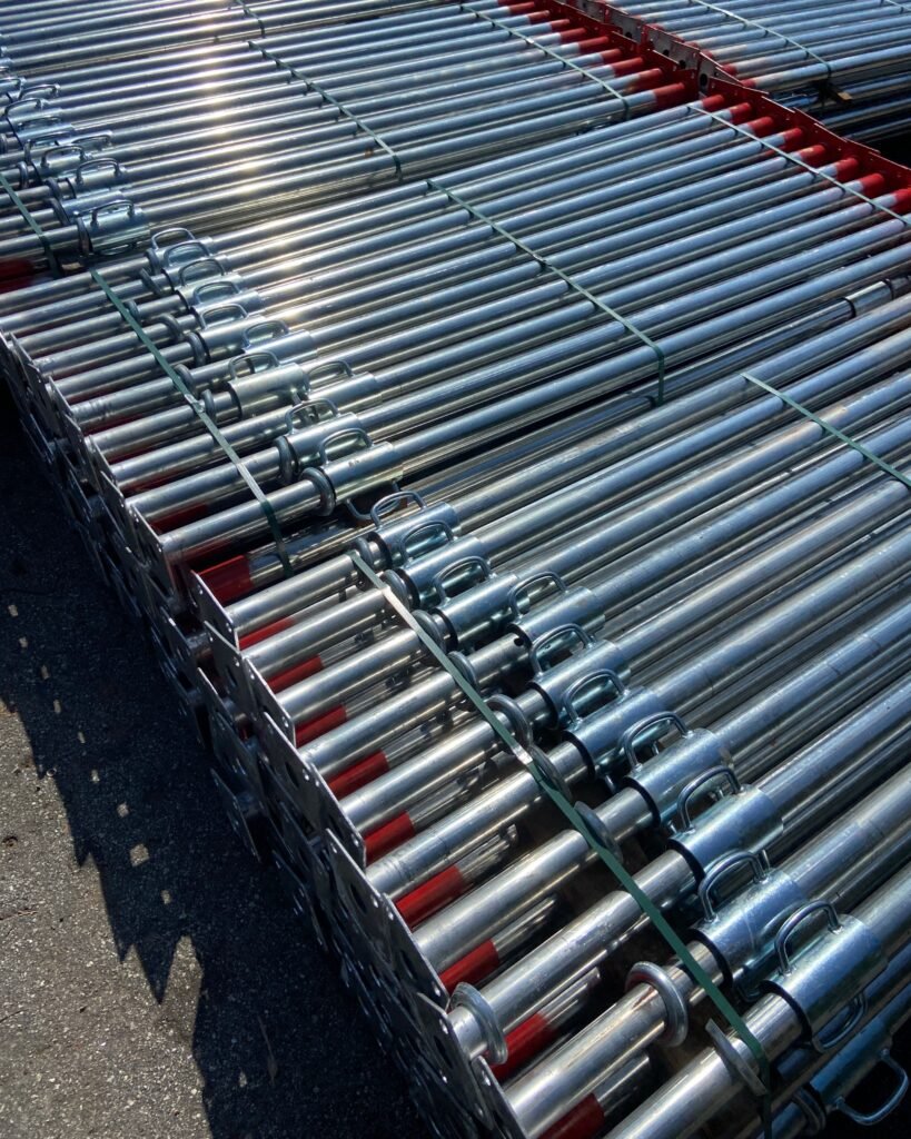 Pussuimos todos os equipamentos necessários para se montar um sistema de escoramento em conformidade com a NBR 15696 (Fôrmas e Escoramentos) e a NR 18 (Segurança no trabalho na indústria da construção)